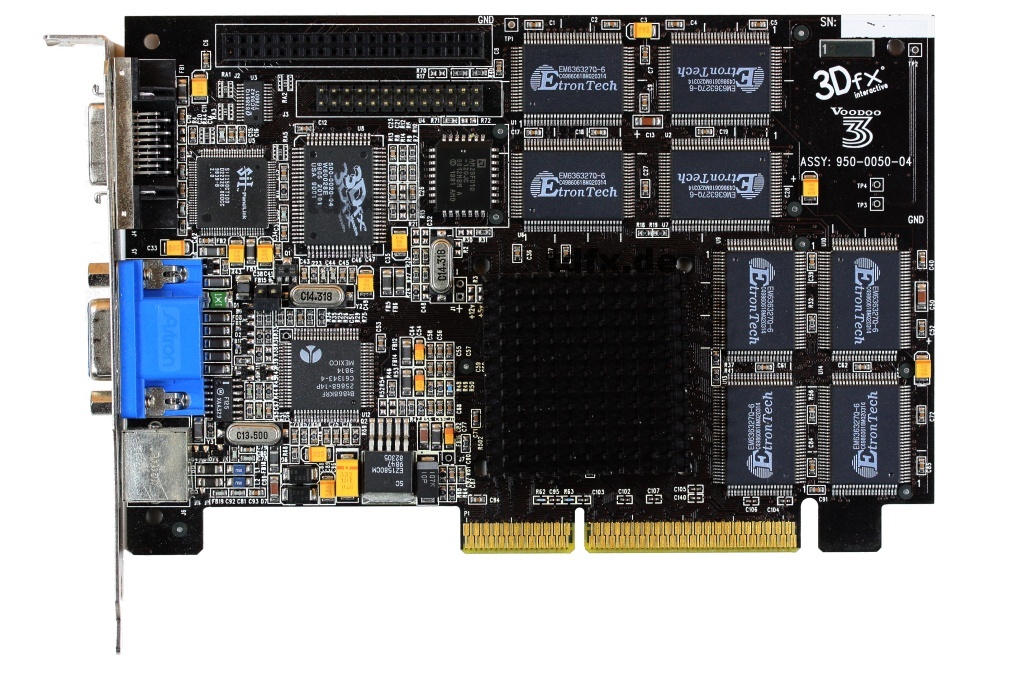 In edlem Schwarz kommt dieser Voodoo3 Prototyp daher, und noch dazu in Top Ausstattung mit TV- und DFP Ausgang.