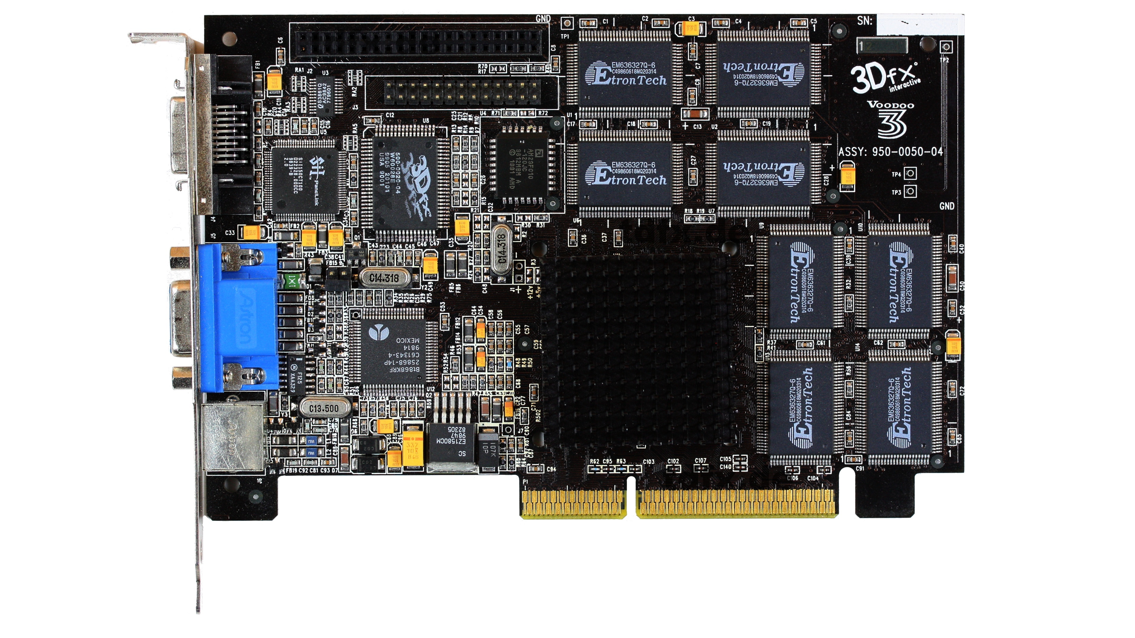 Das Layout erinnert noch sehr stark an das Layout dass auch beim Banshee genutzt wurde, vor allem die Anordnung der RAM-Chips. Das PCB wurde in der Fünften Kalenderwoche 1999 Hergestellt, also Anfang Febuar. Das BIOS meldet sich als VGA BIOS - Version H4 0.37-SG mit 143MHz Takt.